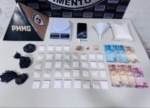 Ao constatarem a prática de tráfico de drogas e diante do flagrante, os policiais adentraram a residência, onde localizaram mais 34 papelotes de cocaína, uma pedra grande de crack, também conhecida como “pasta base”, fragmentos de drogas, uma balança de precisão e uma porção de ácido bórico.
