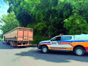 Assim, os militares procederam a abordagem no km 18 da MGC-497, identificando o condutor. Ao realizarem vistoria veicular, constataram que o semirreboque estava com a placa pertencente a um reboque Recrusul, ano 1975, diferente das características do veículo, um semirreboque Boiadeiro Vilaços.
