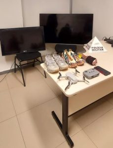 Conforme a ocorrência, parte dos materiais roubados foram localizados após serem comercializados a terceiros, como um celular, tênis e televisões. Após rastreamento, foram localizados também um drone com um dos acusados e outros aparelhos roubados jogados em um terreno.