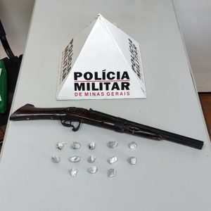 Na abordagem, os policiais constataram que se tratava de um menor de idade, 16 anos. Após busca pessoal, foram encontradas no bolso da sua calça, 13 buchas de substância semelhante à maconha, prontas para serem comercializadas. Em seguida, a guarnição retornou ao local inicial da visualização do adolescente, encontrando uma arma de fogo tipo escopeta, sem munições.
