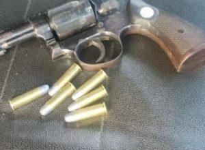 No veículo estavam dois ocupantes, que transportavam vários produtos de procedência duvidosa, como aparelho televisor, notebook, botijão de gás, óculos, chapéus e aparelhos celulares, além de um revólver Taurus, calibre 38, carregado com seis munições.