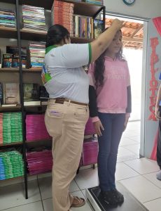 A iniciativa não se limitou à teoria. As Agentes Comunitárias de Saúde (ACS) da Secretaria de Saúde complementaram o projeto com uma etapa prática e de monitoramento essencial. Elas realizaram a pesagem dos alunos, um indicador importante para o acompanhamento do estado nutricional da comunidade escolar.