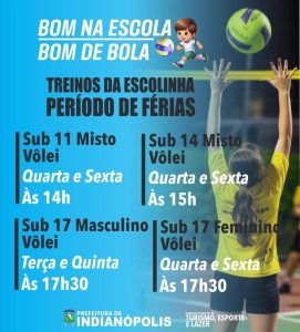 No âmbito do voleibol, as atividades foram organizadas para contemplar diversas faixas etárias em horários estratégicos. As categorias Sub-11 Misto e Sub-14 Misto realizam seus treinamentos às quartas e sextas-feiras, com início às 14h e 15h, respectivamente. Já os atletas da categoria Sub-17 possuem cronogramas específicos, sendo que o time masculino treina às terças e quintas-feiras, a partir das 17h30, enquanto o time feminino se reúne no mesmo horário, às 17h30, porém às quartas e sextas-feiras. Essa estruturação permite que o ginásio receba um fluxo constante de alunos, garantindo atenção técnica adequada para cada grupo e mantendo o ritmo competitivo mesmo sem as obrigações escolares imediatas.