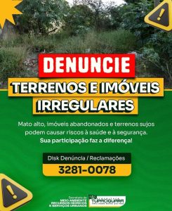 A gestão municipal reforça que manter Tupaciguara limpa e segura é um ato de cidadania que beneficia a todos, transformando cada bairro em um lugar mais digno e próspero para se viver. Caso você identifique áreas em situação de descaso, utilize o Disk Denúncia pelo telefone 3281-0078 e ajude a prefeitura a cuidar da cidade.