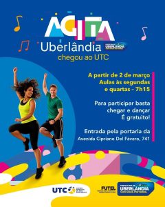 “Com a realização de aulas no UTC, a Futel levará à região Central de Uberlândia mais uma atividade que proporciona diversos benefícios físicos e mentais. A expectativa é que a procura seja excelente e que pessoas de diferentes faixas etárias sejam beneficiadas”, afirmou a coordenadora do “Agita Uberlândia”, a profissional de educação física da Futel, Juliana Camila.