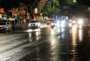 Durante a chuva forte, a orientação é permanecer em casa sempre que possível, evitando se abrigar sob árvores, postes ou estruturas metálicas. Não se deve utilizar aparelhos eletrônicos conectados à tomada, devido ao risco de descargas elétricas. Quem estiver dirigindo deve evitar ruas alagadas, reduzir a velocidade e manter distância segura de outros veículos. Em caso de baixa visibilidade, o ideal é parar em local seguro e aguardar a melhora do tempo.