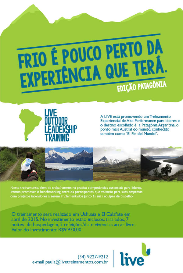 Paula: O objetivo é promover um treinamento de alta performance para um desenvolvimento pessoal e profissional na Patagônia (Terras do fim do mundo – Ushuaia e El Calafate).