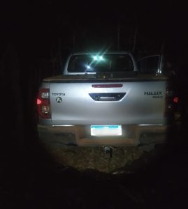 A Hilux furtada em Araguari foi encontrada numa mata fechada de uma estrada vicinal às margens da MG-452, proximidades do município de Tupaciguara.