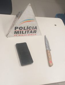 A PM procedeu a abordagem do suspeito e encontrou em suas vestes um aparelho celular e uma faca, cabo de madeira com aproximadamente 15 cm de lâmina. Antes de ser algemado, ele quis correr, mas foi detido. De acordo com a ocorrência, o adolescente foi levado até o local e reconheceu os seus pertences bem como o autor dos fatos.