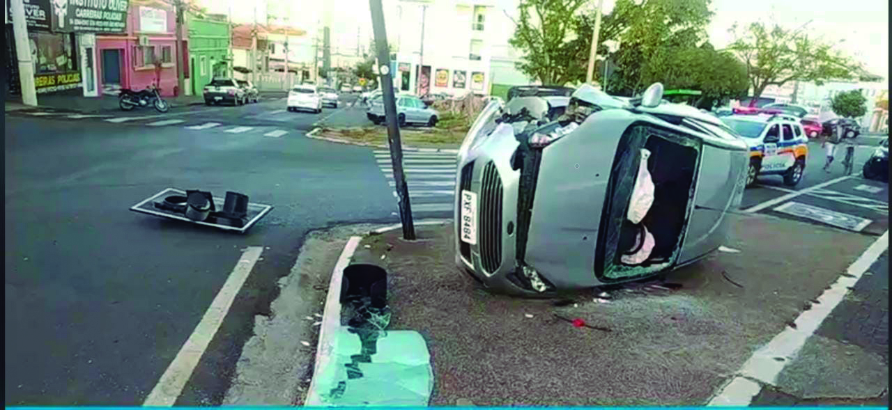 Tombamento em semáforo próximo a UPA assusta ocupantes de veículo
