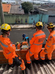 O trabalhador foi encontrado deitado no telhado, consciente e confuso, porém, apresentando corte contuso na face, queimaduras de segundo e terceiro graus, com ferimentos de entrada e saída.