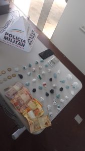 Ainda pela manhã, por volta das 11h, na rua Niquelândia, bairro Maria Eugênia, a guarnição PM se aproximou de um suspeito e este quis entrar numa casa. Na abordagem, os policiais localizaram 200 reais em cédulas diversas e um telefone celular, os quais estavam no bolso no jovem de 18 anos.