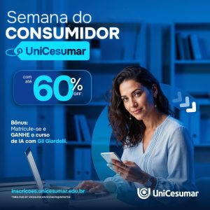 A UniCesumar realiza, entre os dias 10 e 16 de março, uma campanha especial em comemoração ao Dia do Consumidor, oferecendo descontos de até 60% em cursos de pós-graduação, técnicos e profissionalizantes. A ação faz parte da chamada Semana do Consumidor, período tradicional do comércio e dos serviços voltado à oferta de condições especiais para o público.